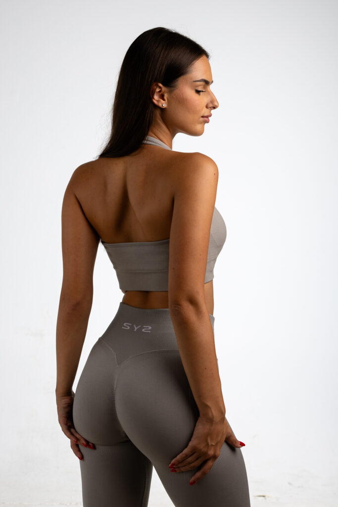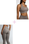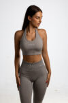 – Kialakítás: Mély dekoltázs és nyitott hát a melltartón, magas tartású derékrész és fenékkialakítás a leggingsen.
